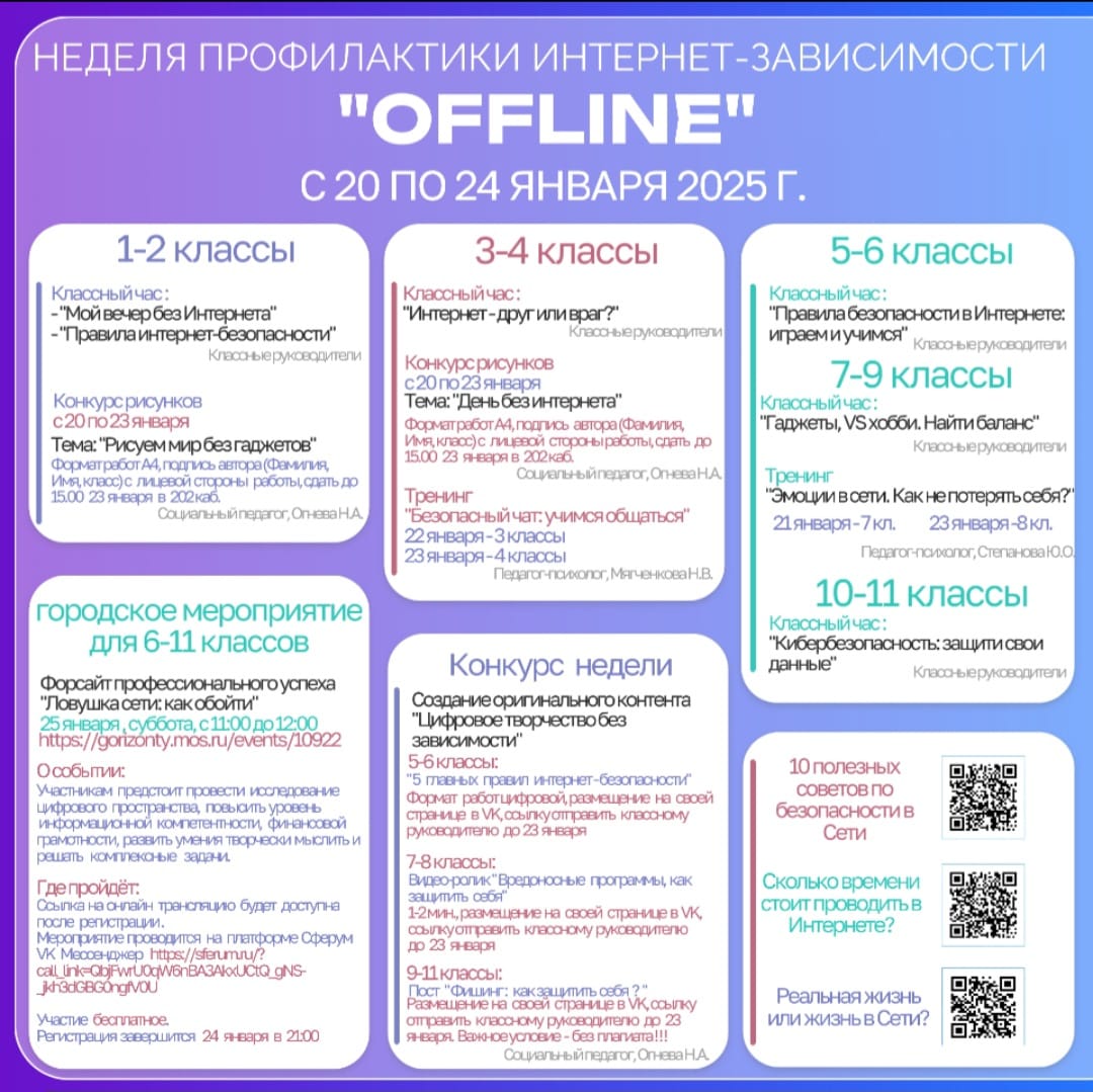 С 20 по 24 января в наше школе проходит «Неделя профилактики интернет-зависимости OFFLINE».